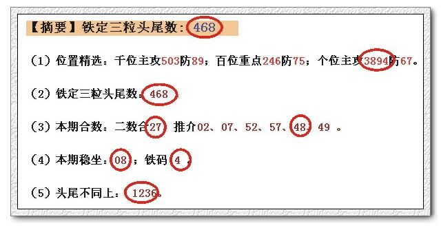 (1)位置精选:千位主攻579防46;百位重点035防29;个位主攻4978防56。