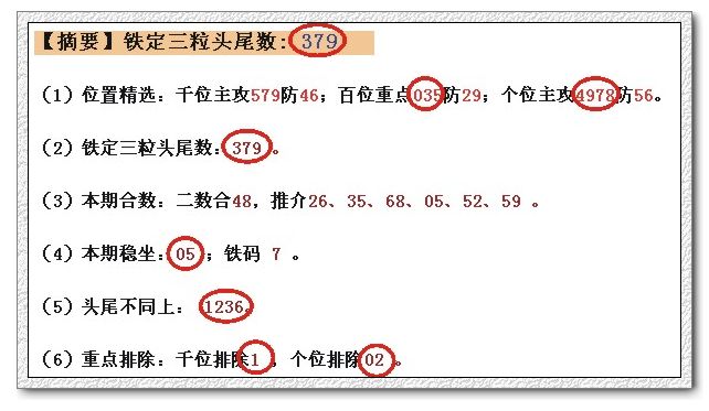 【摘要】铁定三粒头尾数: 479
