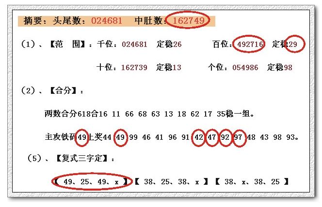 (3)、头尾数:【 164938 】 中肚数:【 384916 】