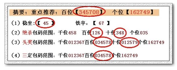 (2)绝杀包码范围:千位348 百位237 十位126 个位689