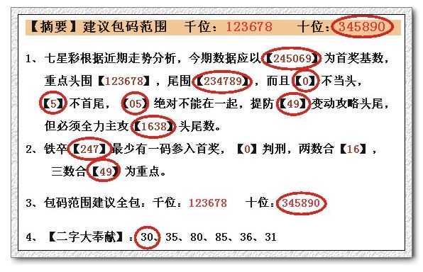 1、七星彩根据近期走势分析,今期数据应以【490538】为首奖基数,