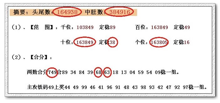 (3)、头尾数:【 160549 】 中肚数:【 274916 】