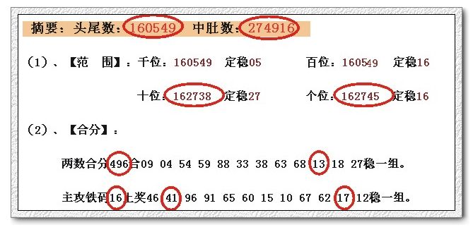 (3)、头尾数:【 164905 】 中肚数:【 162794 】