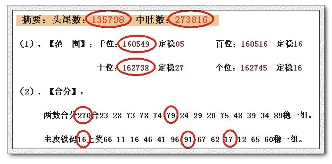 (3)、头尾数:【 160527 】 中肚数:【 962738 】