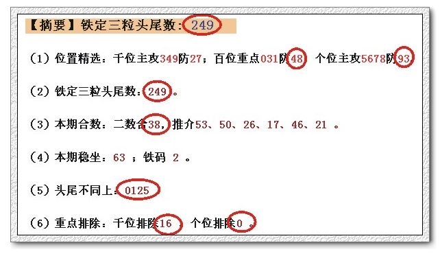 (1)位置精选:千位主攻269防70;百位重点259防63;个位主攻5684防97。