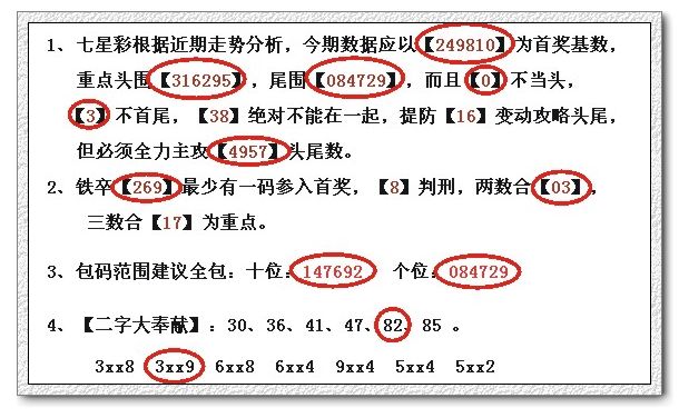 1、七星彩根据近期走势分析,今期数据应以【236078】为首奖基数,
