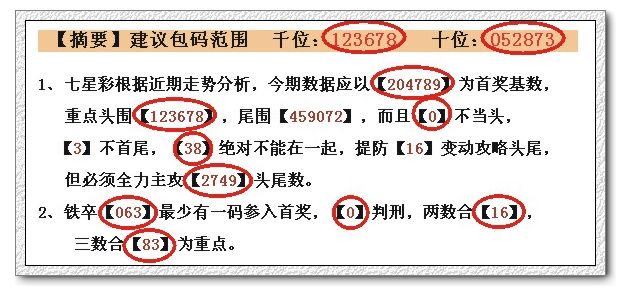 【摘要】建议包码范围 千位:147692 十位:234789