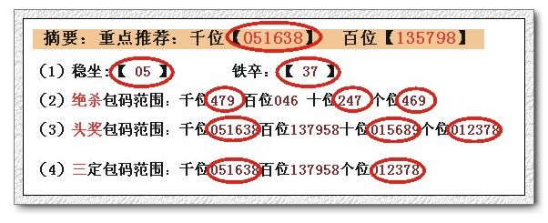(2)绝杀包码范围:千位057 百位159 十位356 个位469
