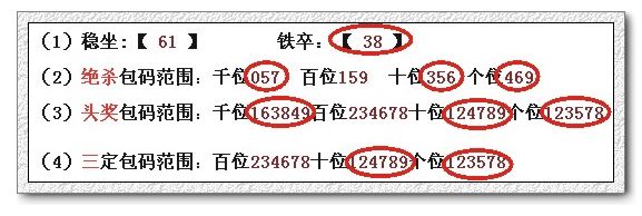 (3)头奖包码范围:千位051678百位162738十位124689个位034579