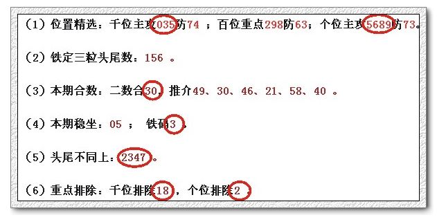 (1)位置精选:千位主攻302防56 ;百位重点974防82;个位主攻4368防79。