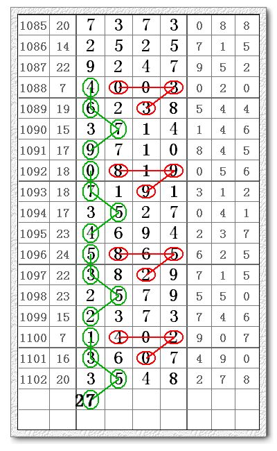 七星彩第11085期(1103期)预测信息分解