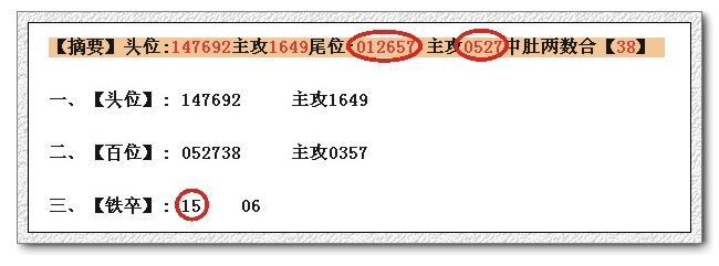【摘要】头位:147692主攻2749尾位:369814 主攻3849中肚两数合【27】