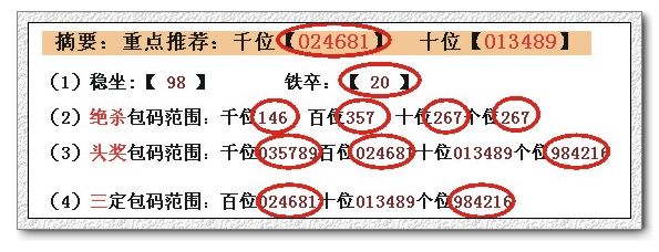 (2)绝杀包码范围:千位296 百位420 十位843个位450
