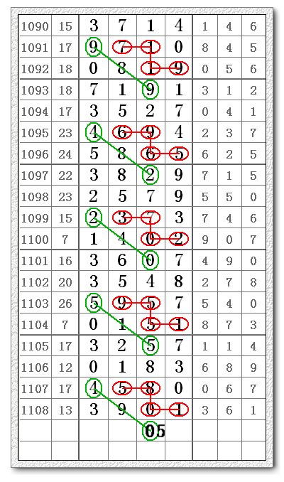 七星彩第11091期(1109期)信息预测分解