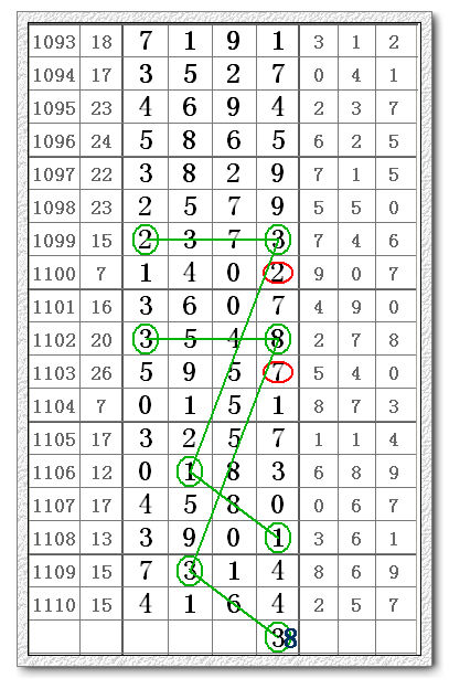 七星彩第11093期(1111期)信息预测分解
