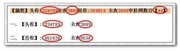 【摘要】头位:369814主攻1649尾位:051627 主攻0257中肚两数合【27】