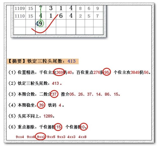 (1)位置精选:千位主攻142防06;百位重点398防45;个位主攻6385防91。