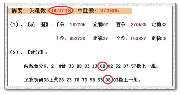 (3)、头尾数:【 164935 】 中肚数:【 273805 】