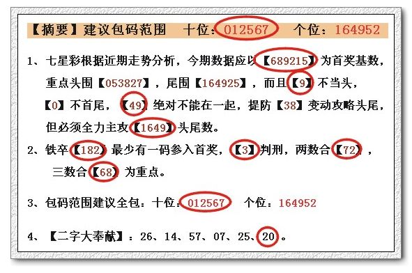 1、七星彩根据近期走势分析,今期数据应以【506829】为首奖基数,