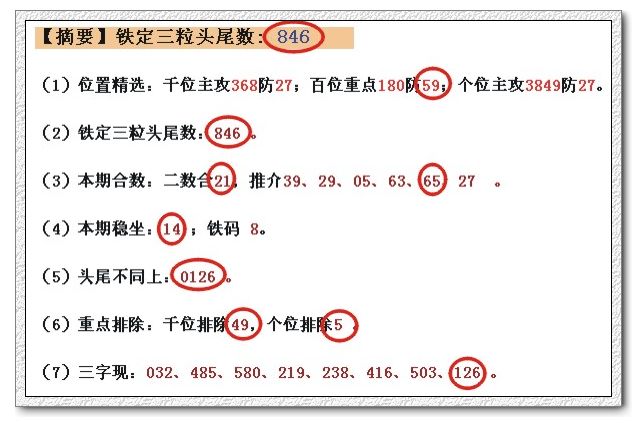 (1)位置精选:千位主攻401防68;百位重点293防74;个位主攻8053防94。