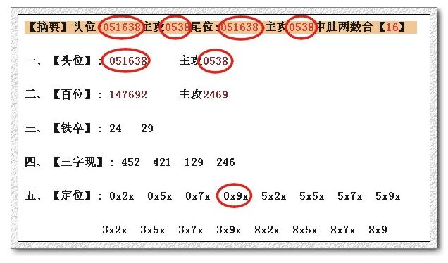 【摘要】头位:491638主攻1468尾位:051638 主攻0368中肚两数合【16】