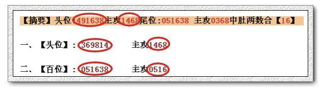 【摘要】头位:491638主攻1468尾位:051638 主攻0368中肚两数合【05】