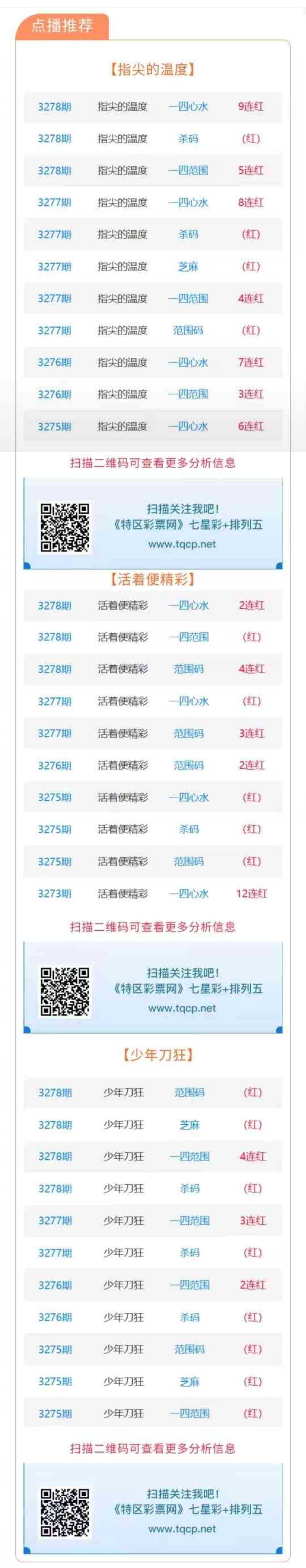 七星彩3279期点播推荐指尖的温度、活着便精彩和少年刀狂 3位分析师