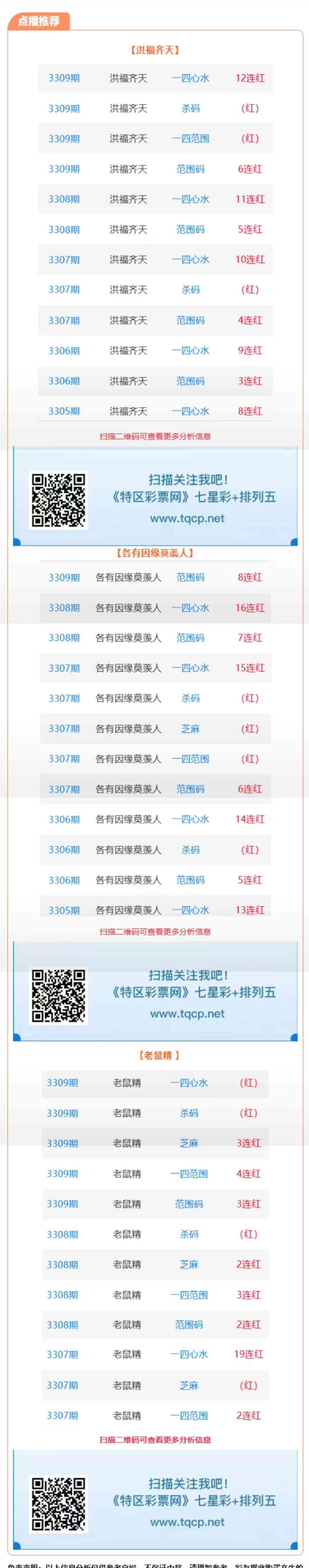 七星彩3310期点播推荐洪福齐天、各有因缘莫羡人和老鼠精 3位分析师