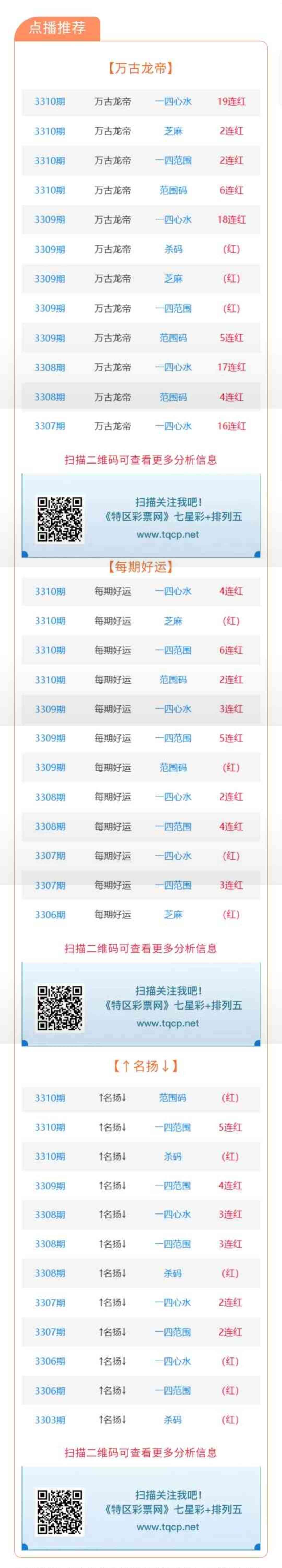七星彩3311期点播推荐万古龙帝、每期好运和↑名扬↓ 3位分析师