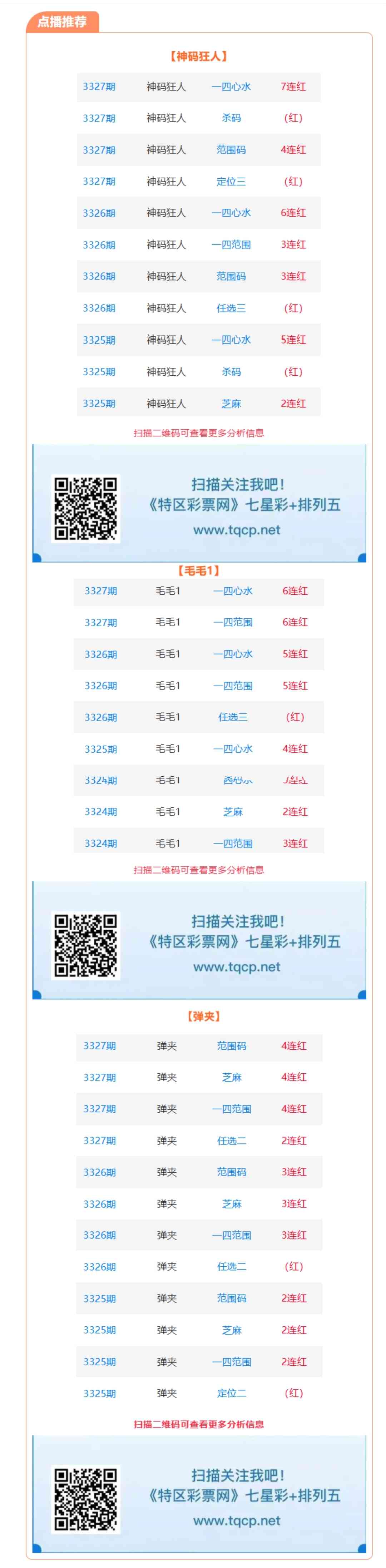 七星彩3328期点播推荐神码狂人、毛毛1和弹夹 3位分析师