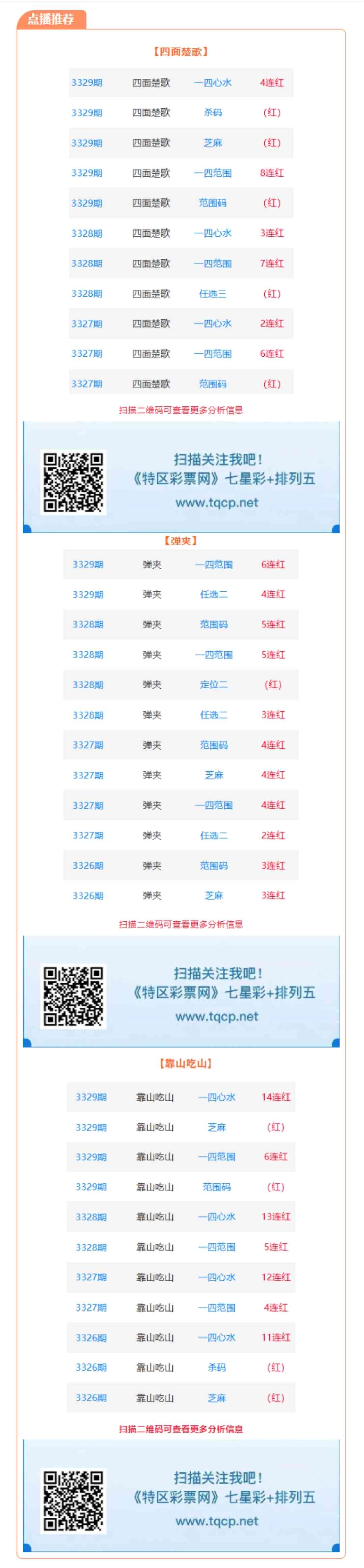 七星彩3330期点播推荐四面楚歌、弹夹和靠山吃山 三位分析师