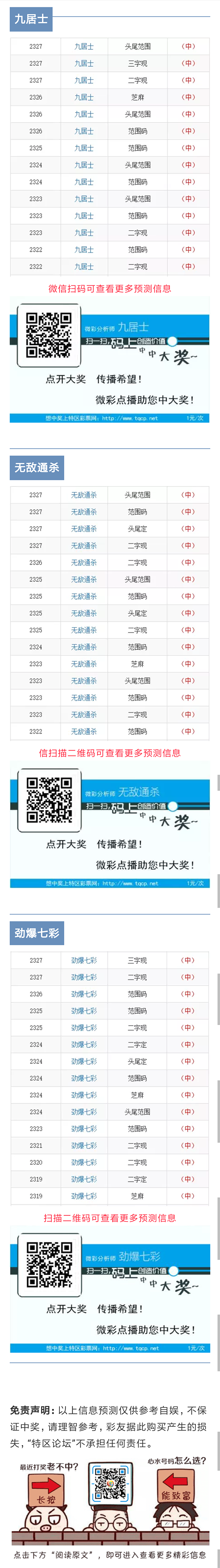 【点播推荐】2328期推荐“九居士”“***通杀”、“劲爆七彩”三位大师 缩略图
