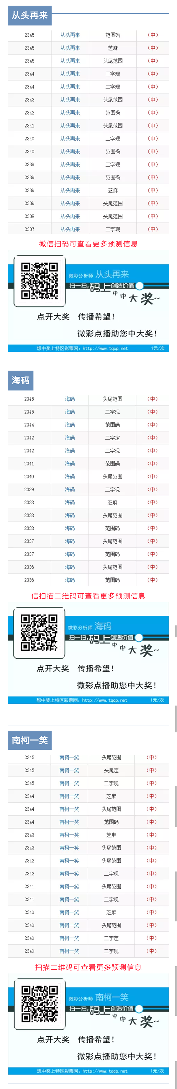 【点播推荐】2346期推荐“从头再来”、“海码”、“南柯一笑”三位大师