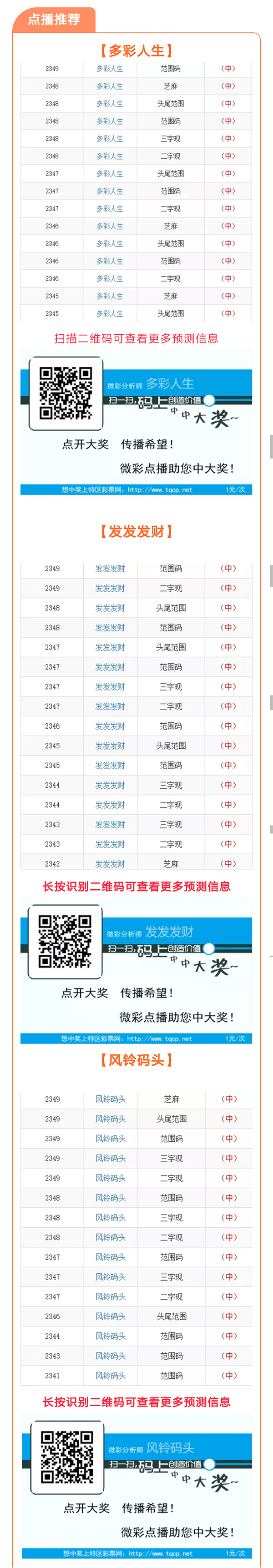 【点播推荐】2350期推荐“多彩人生”、“发发发财”、“风铃码头”三位大师