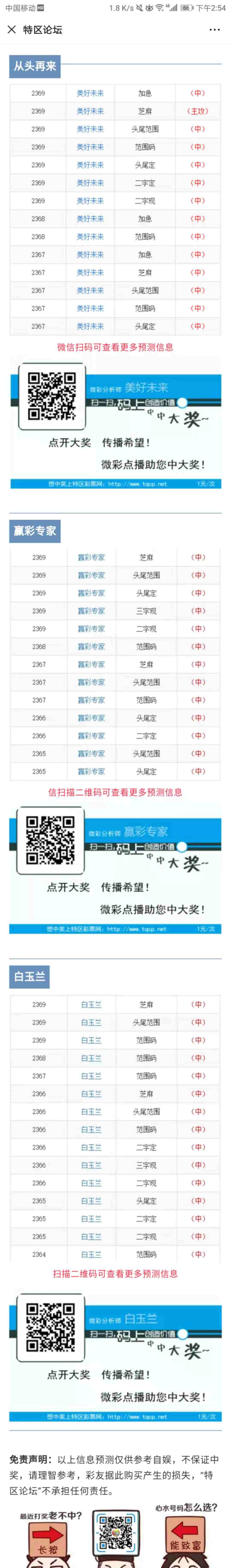 【点播推荐】2370期推荐“美好未来”、“赢彩专家”、“白玉兰”三位大师