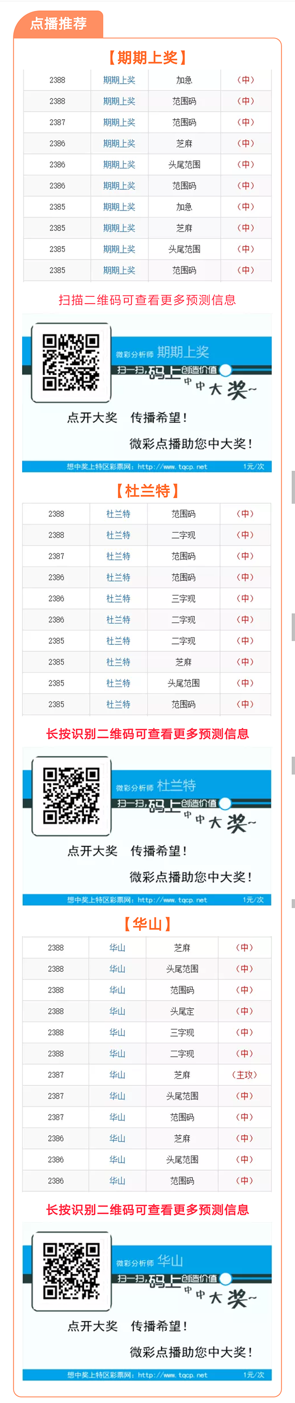 【点播推荐】2389期推荐“期期上奖”、"杜兰特"、“华山”三位大师