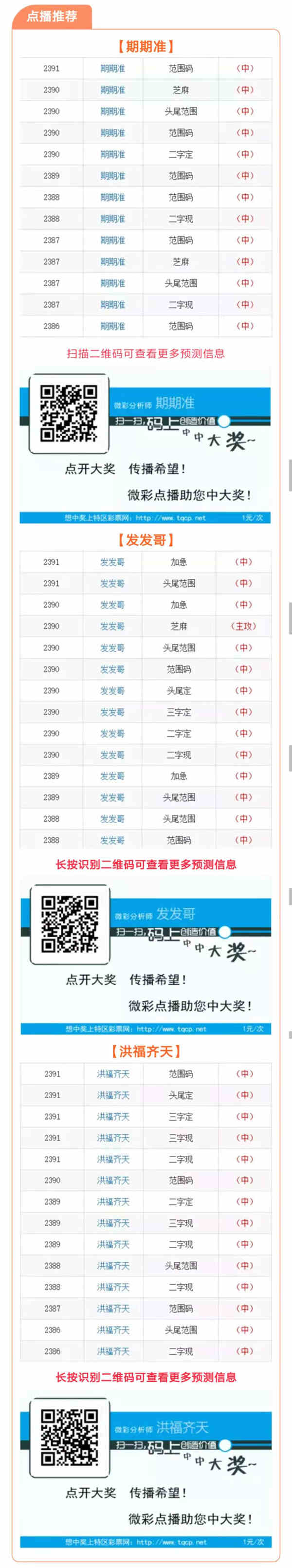 【点播推荐】2392期推荐“期期准”、"发发哥"、“洪福齐天”三位大师