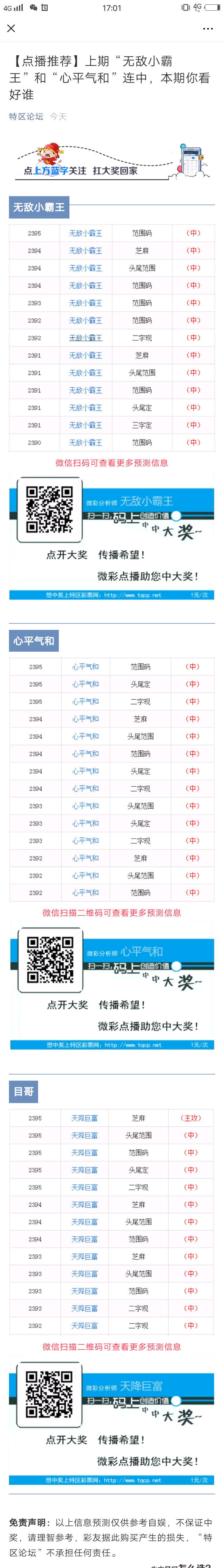 【点播推荐】2396期推荐“***小霸王”、"心平气和"、“天降巨富”三位大师