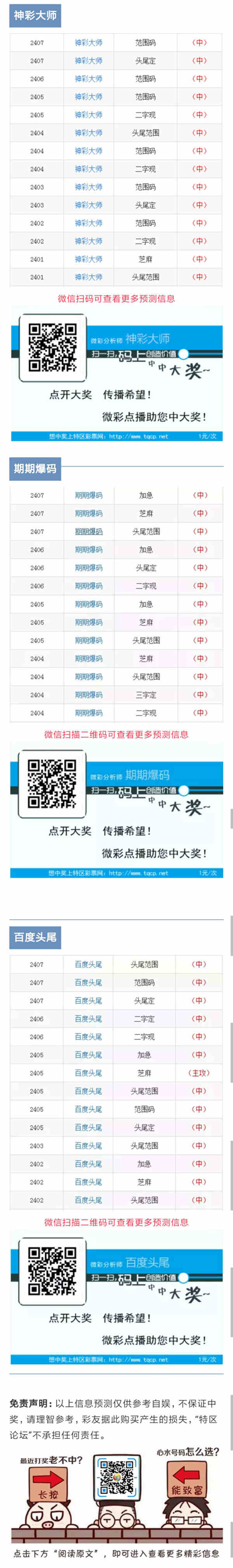 【点播推荐】2408期推荐“神彩大师”、“百度头尾”、“期期爆码”3位大师