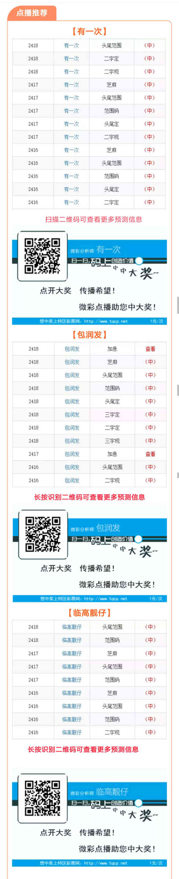 【点播推荐】2419期推荐“有一次”和“包润发”“临高靓仔”3位大师
