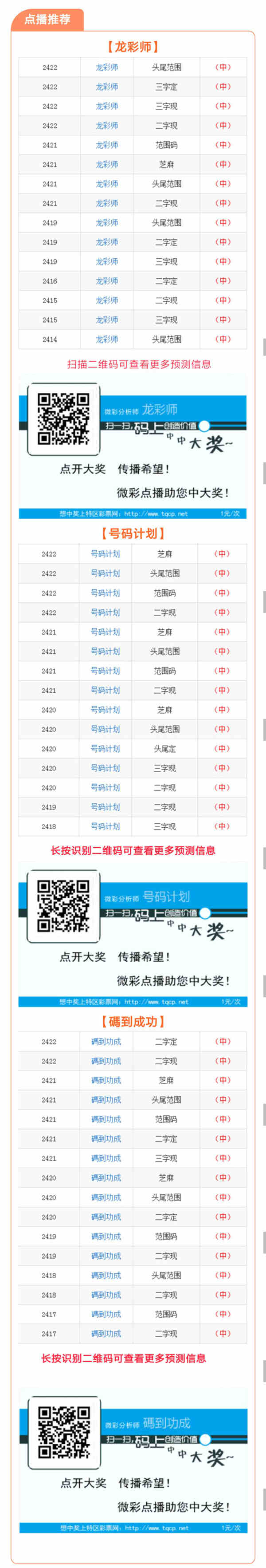 【点播推荐】2423期推荐“龙彩师”和“号码计划”“碼到成功”3位大师