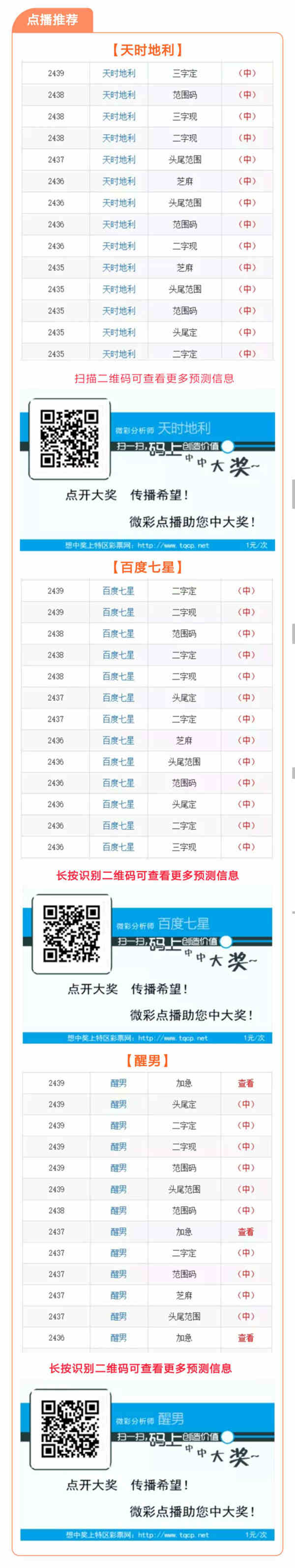 【点播推荐】2440期推荐“天时地利”和“百度七星”“醒男”3位大师