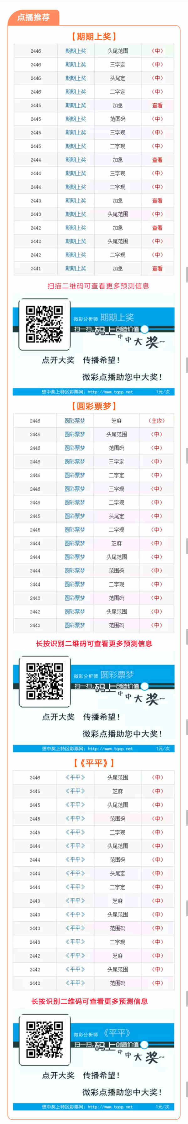 【点播推荐】2447期推荐“期期上奖”和“圆彩票梦”“《平平》”3位大师
