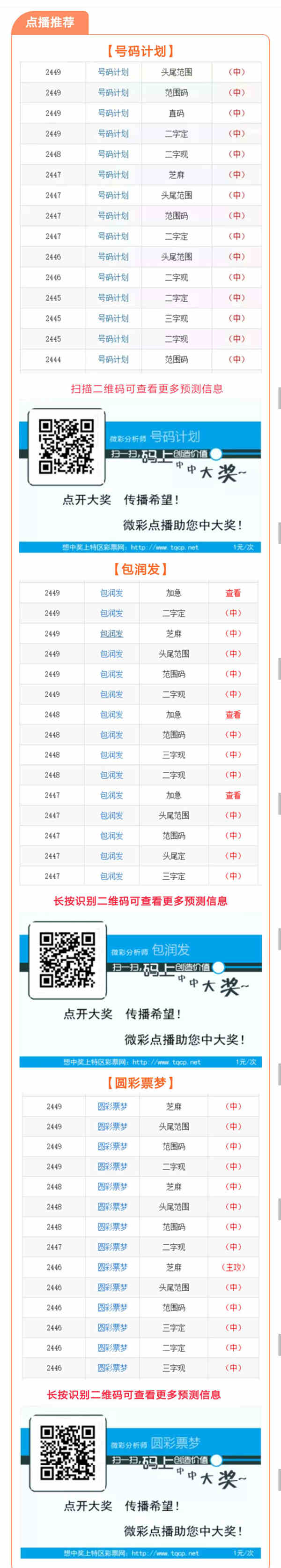 【点播推荐】2450期推荐“号码计划”和“包润发”“圆彩票梦”3位大师