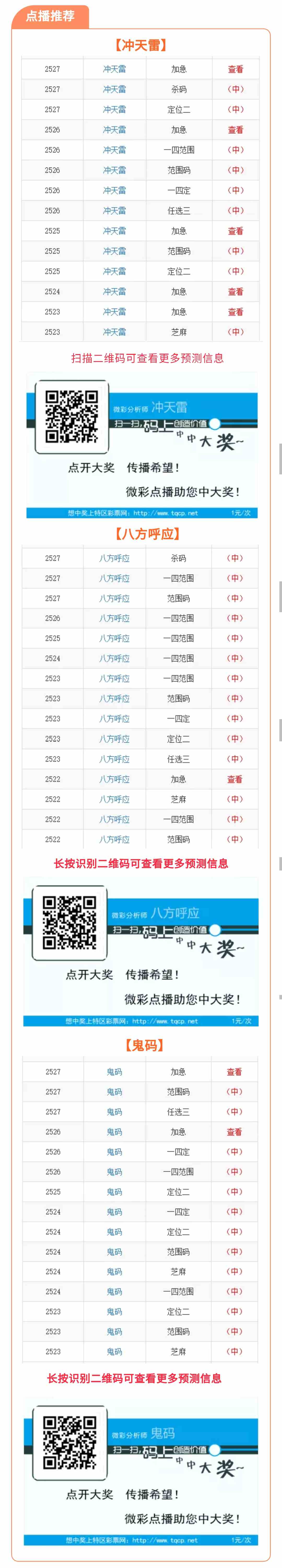 【点播推荐】2528期推荐“冲天雷”“八方呼应““鬼码”3位分析师