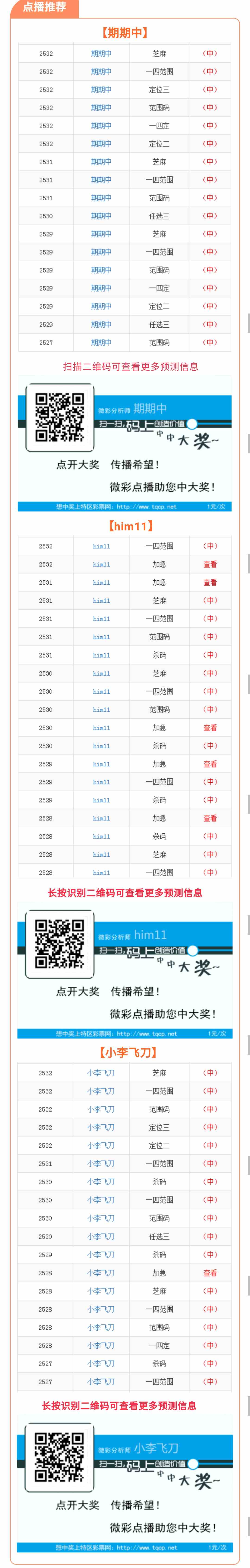 【点播推荐】2533期推荐“期期中”him11”“小李飞刀”3位分析师