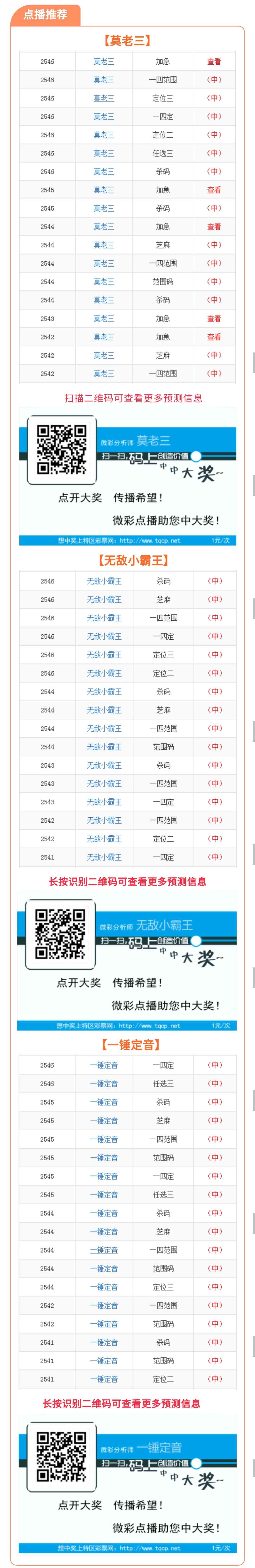 【点播推荐】2547期推荐“莫老三”“***小霸王”“一锤定音”3位分析师