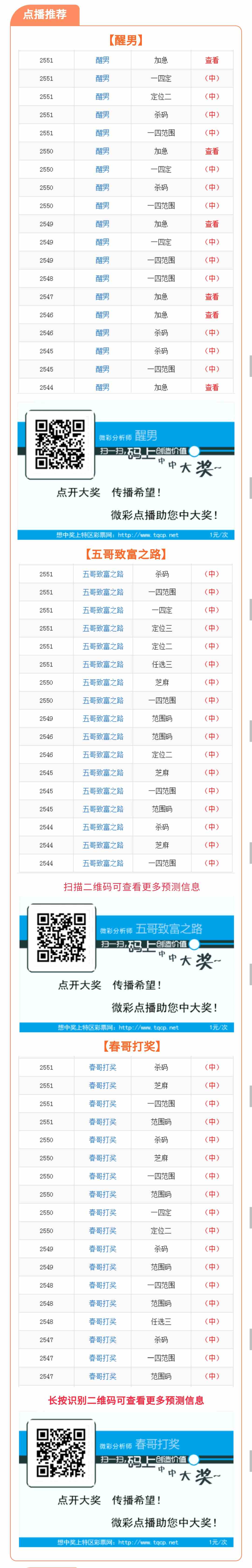 【点播推荐】2552期推荐醒男”五哥致富之路”“春哥打奖”3位分析师