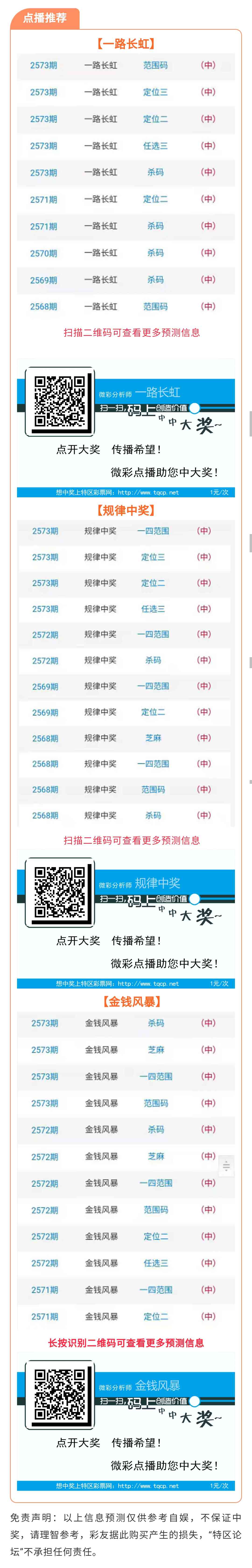 【点播推荐】2574期推荐“一路长虹”“规律中奖”“金钱风暴”3位分析师