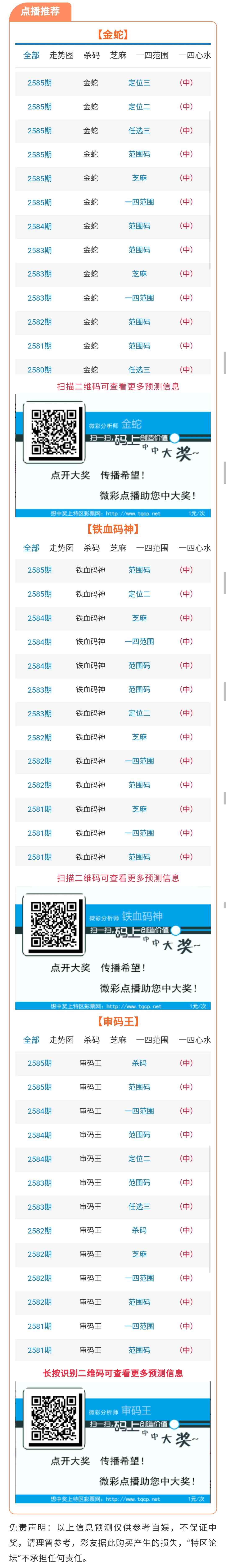 【点播推荐】2586期推荐“金蛇”“铁血码神”“审码王”3位分析师